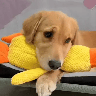 Når hunden bider i den, høres en kvækkelyd, som vækker nysgerrighed og får hunden til gerne at fortsætte med at lege, bære den rundt og have den tæt på sig. Det giver hunden noget trygt at fokusere på, hvilket kan reducere rastløshed og stress, også når den er alene.